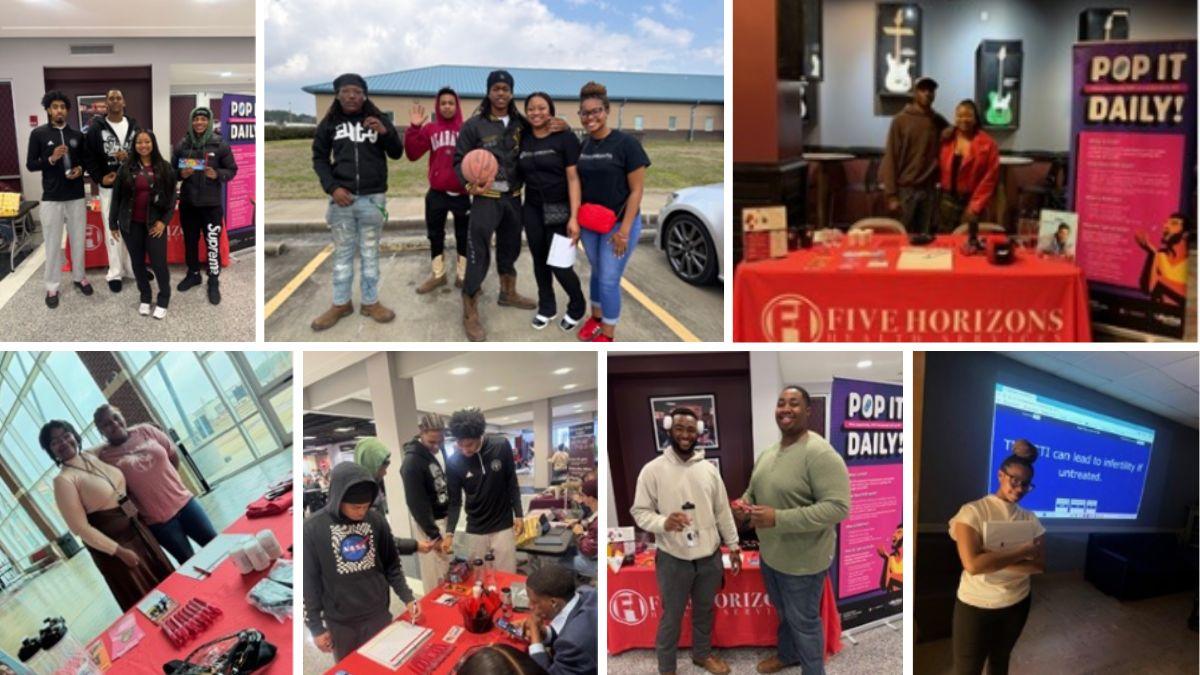 The Tuscaloosa Five Spot team stayed busy connecting with students and the community through a variety of outreach, education, and engagement events. Staff participated in several activities during Stillman College’s Homecoming, including Build a Tiger Day, the Pep Rally, and the Homecoming Tailgate, where they provided safe sex kits, food, and HIV testing while sharing information about prevention and available services. Five Spot also hosted the Step for Your Health testing event, offering HIV/STI testing to students and providing step show tickets as an incentive. Throughout the month, the team continued building meaningful connections by collaborating with READY for a Galentine’s event, hosting the Girl, Be for Real women’s group and launching the My Brother’s Keeper men’s group, and providing education sessions and testing at campus events such as the Dance and Cheer Competition mixer and Alpha Kappa Alpha Sorority, Inc.’s Pillow Talk event. These efforts helped promote sexual health awareness, prevention education, and access to care among students.